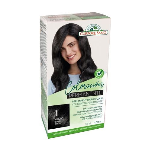 Tinte Permanente Negro nº1 de Corpore Sano es un producto que proporciona al cabello una coloración permanente con un color intenso, luminoso y duradero.